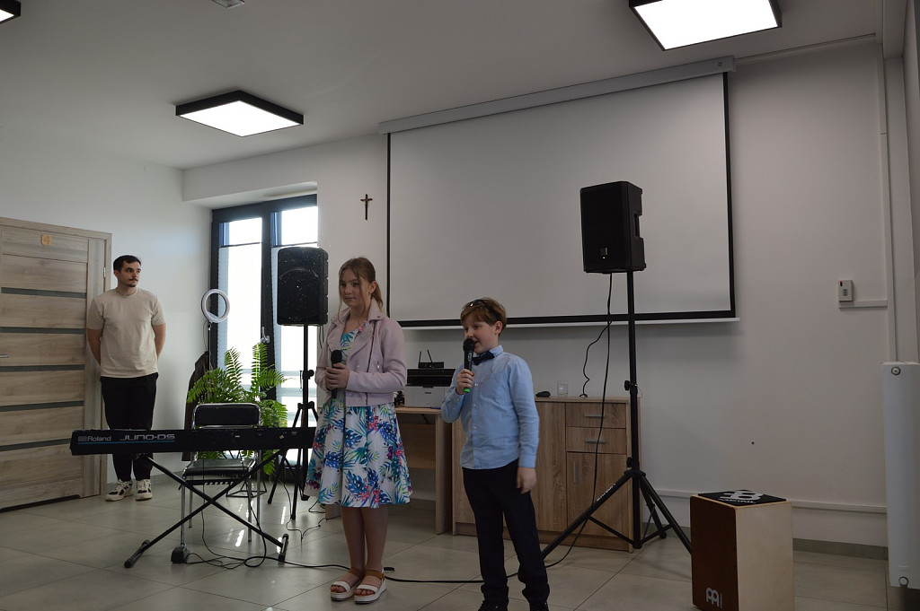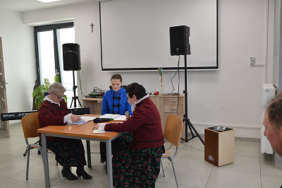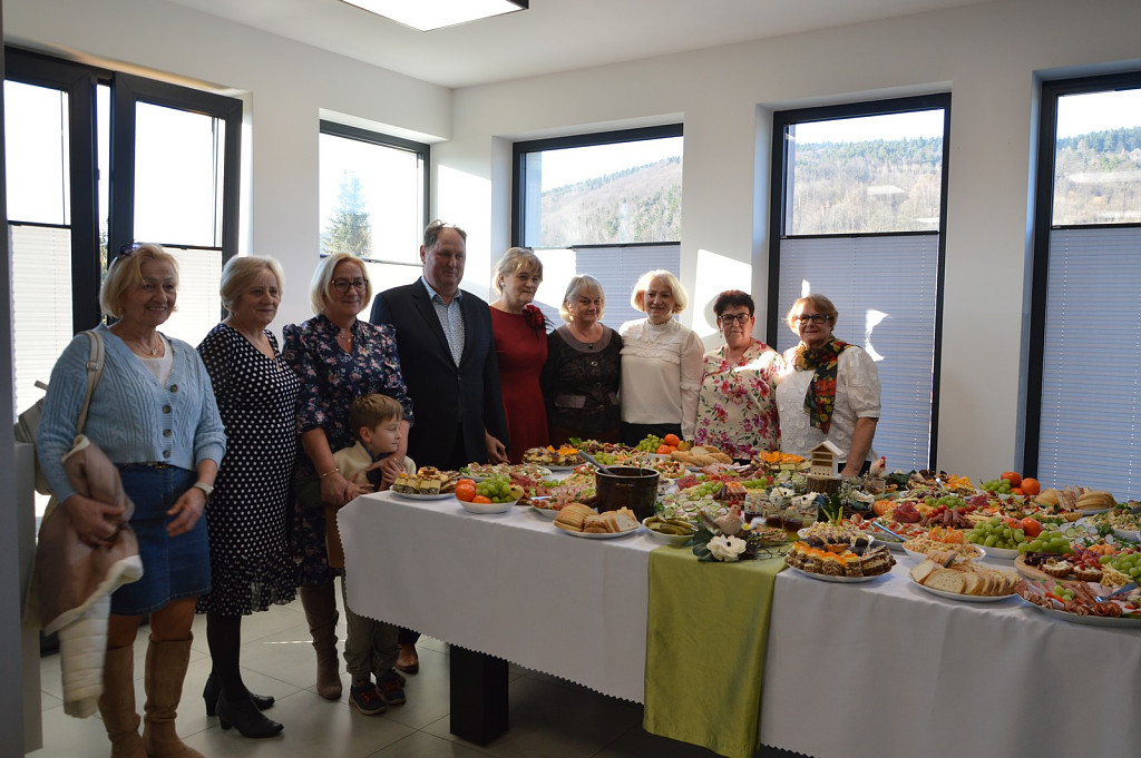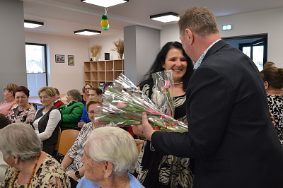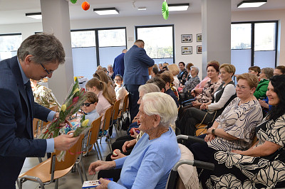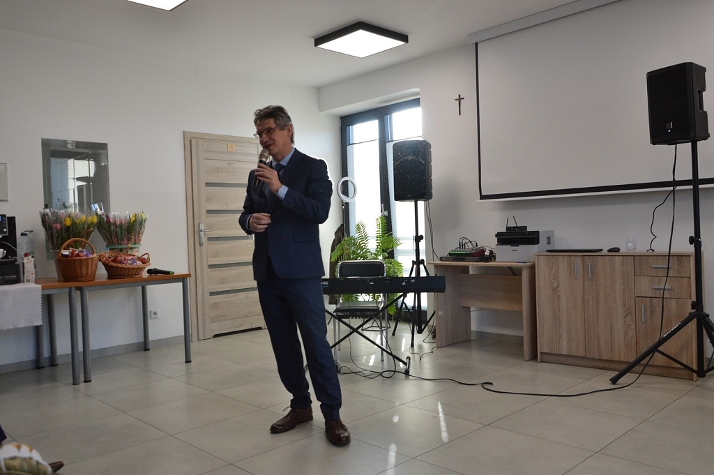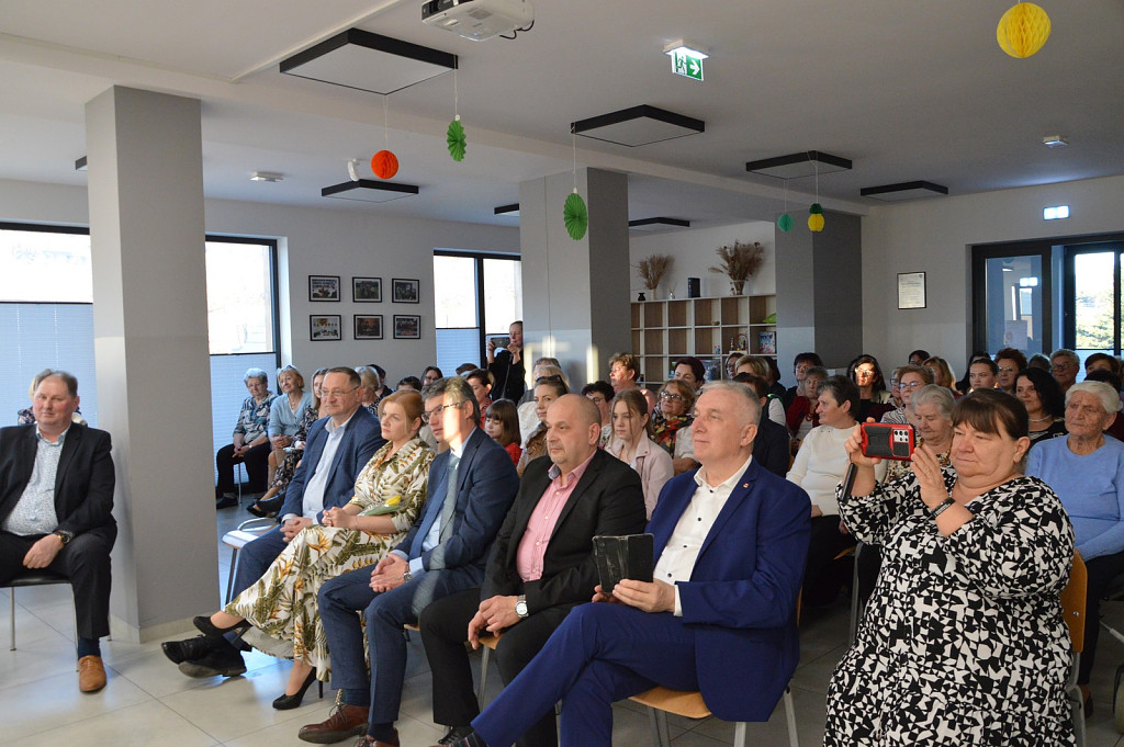 Spotkanie rozpoczęła kierownik biblioteki a nastęnie dzieci uczęszczające na zajęcia świetlicowe: Oliwia Mroczek-Kurzawa i Mateusz Ryś, prezentując wierszowaną scenką poświęconą kobietom. Przybyłych przywitał i złożył życzenia wójt Paweł Ptaszek oraz radni: Zbigniew Hojnor i Marek Twaróg. Do życzeń przyłączyli się radni powiatowi Czesław Kawalec i Leszek Król, dedykując wszystkim kobitom - śpiewająco „sto lat”. Kolejny elementem było wręczenie przez gospodarza i radnych symbolicznych tulipanów oraz słodyczy wszystkim paniom.