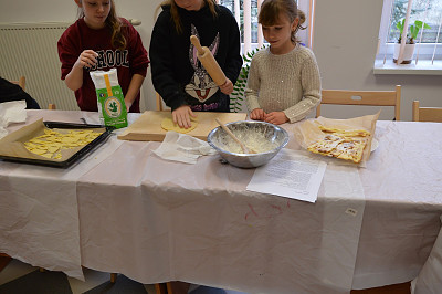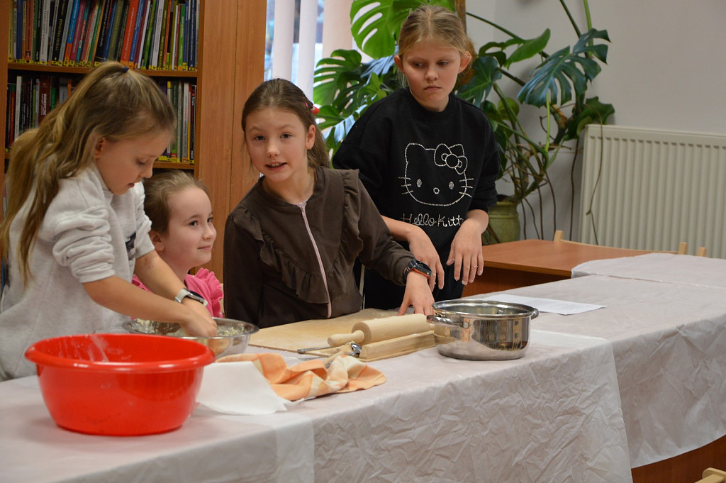 Miłośnicy zajęć kulinarnych poznali zasady przygotowania smacznych wypieków. Nauczyli się, zgodnie z przepisem wyrabiać cisto drożdżowe w efekcie czego powstały pizzowe paluchy. Tuż przed tłustym czwartkiem młodzi kucharze przygotowały faworki oraz maślane ciasteczka z lukrem pomarańczowym.
