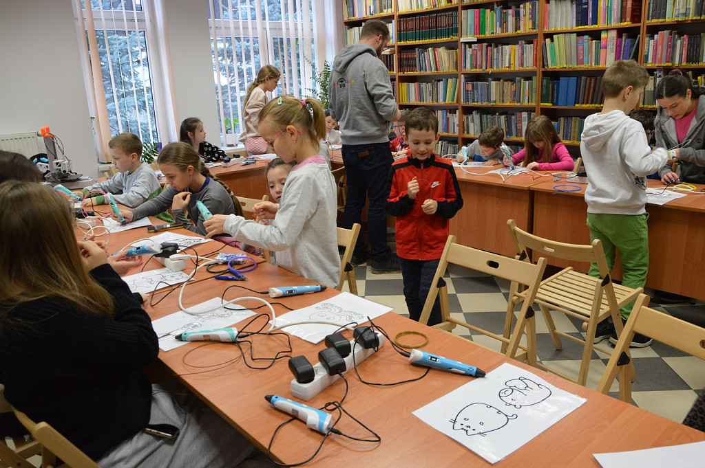 Dużym zainteresowaniem cieszyły się kreatywne warsztaty „Długopisy 3D”, które przeprowadzili instruktorzy z Edu3Dkacja. Dzieci poznały zasady korzystania z drukarki 3D, a także przy wykorzystaniu długopisów 3D, samodzielnie tworzyły własne przestrzenne projekty, rozwijając przy tym wyobraźnię i zdolności manualne.