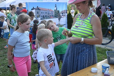Przez całe popołudnie i wieczór na placu czekało na dzieci wiele atrakcji .Animatorki przygotowały dla najmłodszych wiele ciekawych konkursów z nagrodami jak np. zabawy taneczne i ruchowe dzieci z rodzicami, malowanie twarzy, popcorn, wata cukrowa, lody oraz dmuchańce.