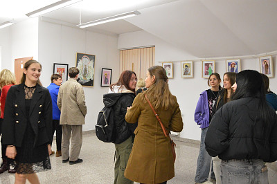 16 grudnia (wtorek), w zimowy wieczór, przestrzeń biblioteki wypełniła się malarstwem Dominiki Gabryś oraz spokojną, refleksyjną atmosferą spotkania z jej twórczością. Na wernisaż przybyli najbliżsi artystki, miłośnicy sztuki, nauczyciele wraz z młodzieżą z Zespołu Szkół w Tymbarku, a także przyjaciele i znajomi – wszyscy, którzy chcieli na chwilę zatrzymać się przy obrazie i słowie.