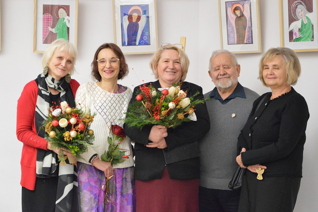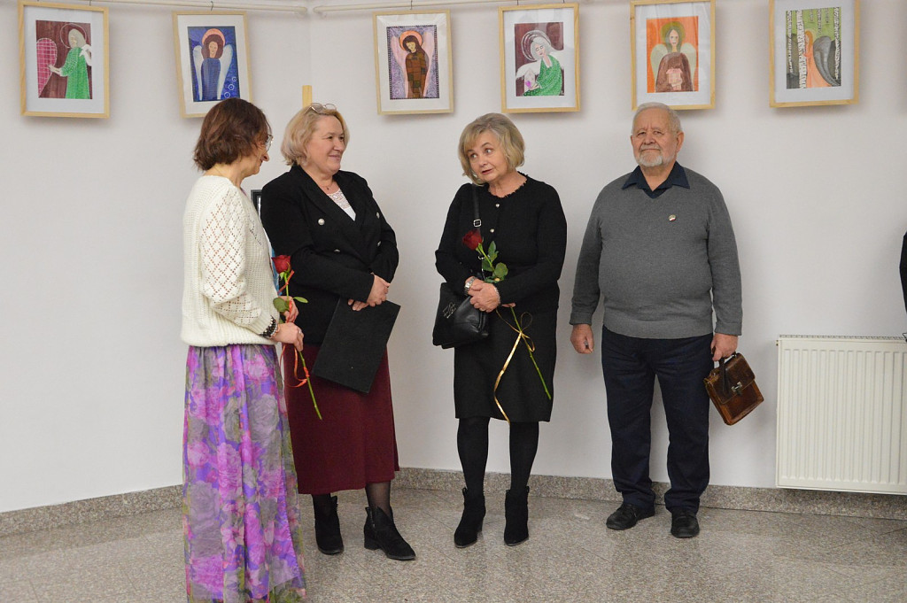 Motywem przewodnim wieczoru były anioły – te zapisane pędzlem na płótnie i te wypowiedziane szeptem w poetyckich strofach. Delikatne, symboliczne, obecne gdzieś pomiędzy sacrum a codziennością, prowadziły widzów przez świat wrażliwości artystki.