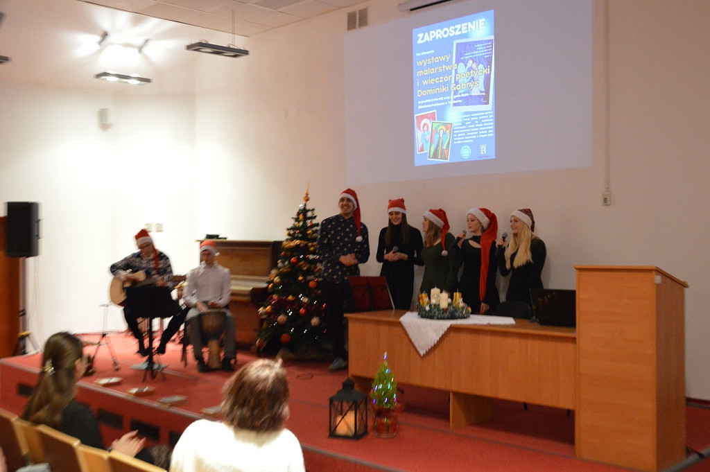 O muzyczno-poetycką oprawę spotkania zadbała Lucyna Wożniak wraz z Zespołem KEN FAMILY. Młodzież zaprezentowała poruszający recital słowno-muzyczny, w którym poezja Dominiki Gabryś zabrzmiała niczym dopełnienie obrazów – delikatne echo anielskiej obecności. Wieczór zakończyły ciepłe, świąteczne życzenia, wypowiedziane w duchu bliskości i wspólnoty.
