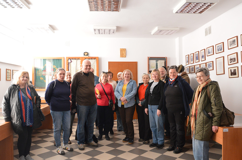 W planie wyjazdu znalazła się Izba Pamięci w naszej bibliotece. Podczas oglądania ekspozycji turyści poznali historię Tymbarku, najważniejsze wydarzenia z uwzględnieniem okresu II w. św.. Nie mogło zabraknąć biogramów znamienitych Tymbarczan, którzy na trwale wpisali się w dzieje miasteczka. Dużą uwagę poświecono rozwojowi spółdzielczości i jej wpływu na rozwój gminy. Na trasie znalazł się też cmentarz wojenny z okresu I wojny światowej.