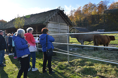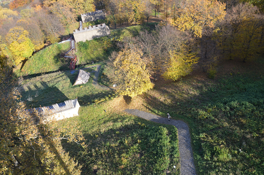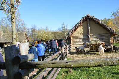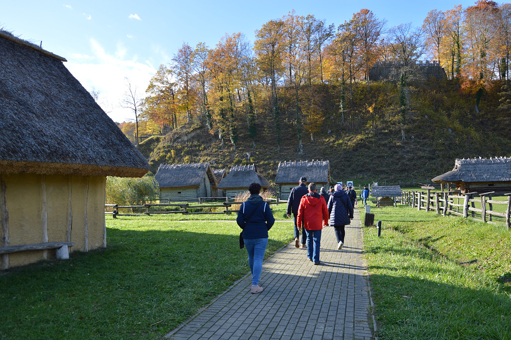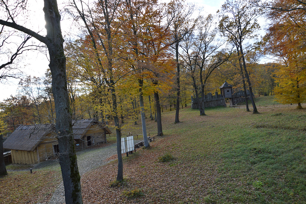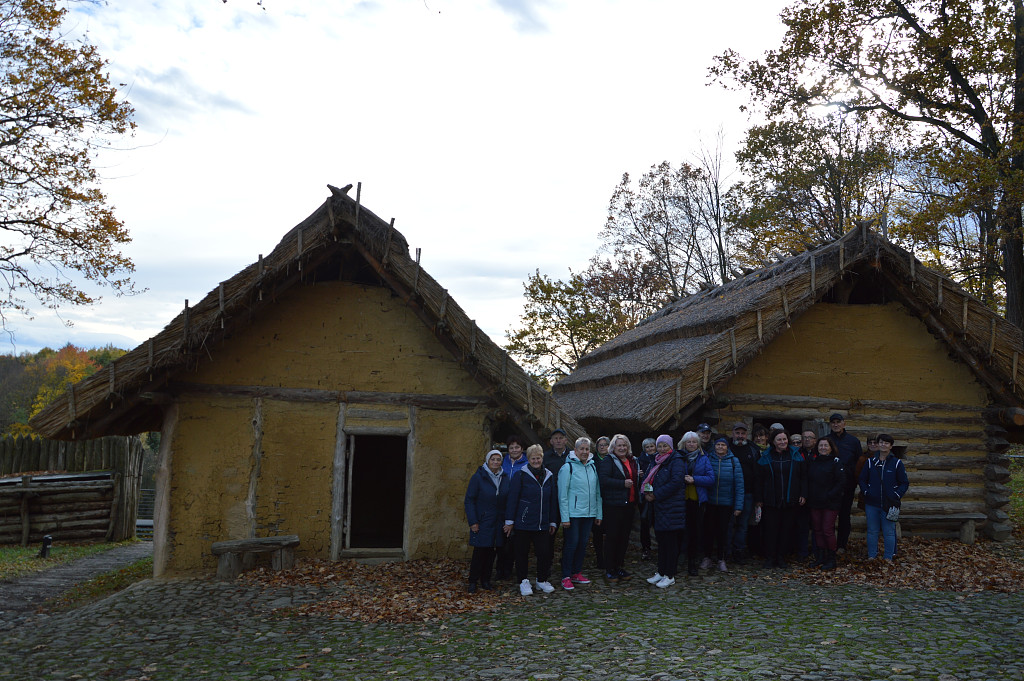 Jesienna pogoda sprzyjała spacerom po Skansenie Archeologicznym „Karpacka Troja” w Trzcinicy. Powstanie skansenu związane jest z okryciem na terenie grodziska zabytków z brązu i żelaza, w tym: srebrne monety, ozdoby, naczynia ceramiczne, krzemienie i kości. Na podstawie przeprowadzonych wykopalisk została zrekonstruowana osada, fragmenty obronnych wałów, dwie bramy z epoki brązu oraz kilka chat. Teren grodziska oraz parku archeologicznego można oglądać z wieży widokowej.