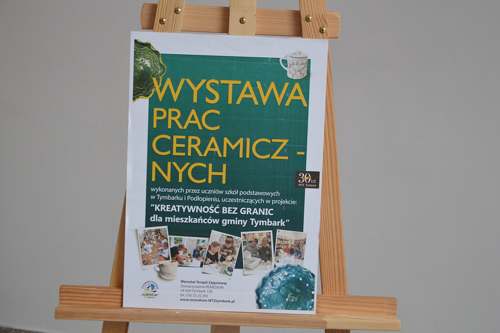 Do końca października w bibliotece można oglądać prace ceramiczne uczniów ze szkół podstawowych w Tymbarku i Podłopieniu, uczestników projektu „Kreatywność bez granic” realizowanego wspólnie przez szkoły i Warsztaty Terapii Zajęciowej Stowarzyszenie Remedium w Tymbarku.